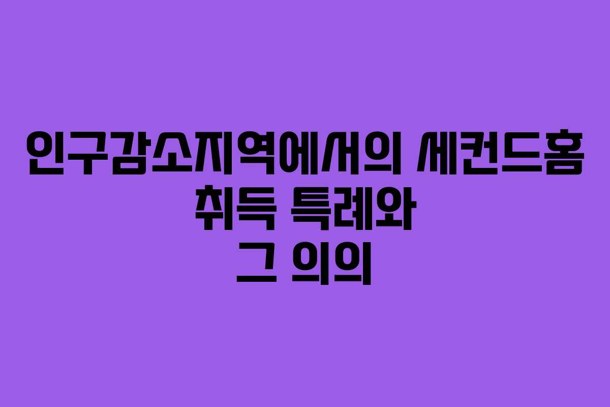 세컨드홈 취득 특례는 1주택자가 인구감소지역에 주택을 추가로 구입할 때 적용되며, 이를 통해 여러 세제 혜택을 누릴 수 있습니다.