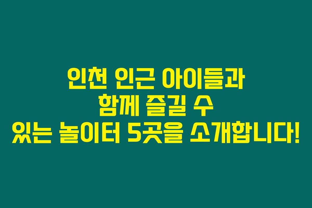 인천에서 아이들과 함께 즐길 수 있는 놀이터를 찾고 계신가요? 그럼 여기 주목해주세요! 인천 인근에서 아이들과 함께 즐거운 시간을 보낼 수 있는 놀이터 5곳을 소개해 드릴게요. 이제 여름철 물놀이를 위해 어딜 가야 할지 고민하지 마세요!