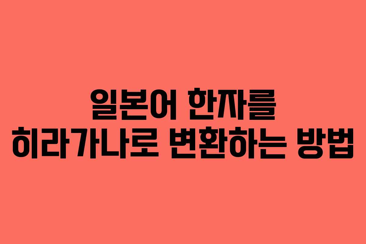 이번 포스팅에서는 일본어 한자를 히라가나로 바꾸는 방법에 대해 알아보았습니다. 일본어 학습에 도움이 되길 바랍니다.