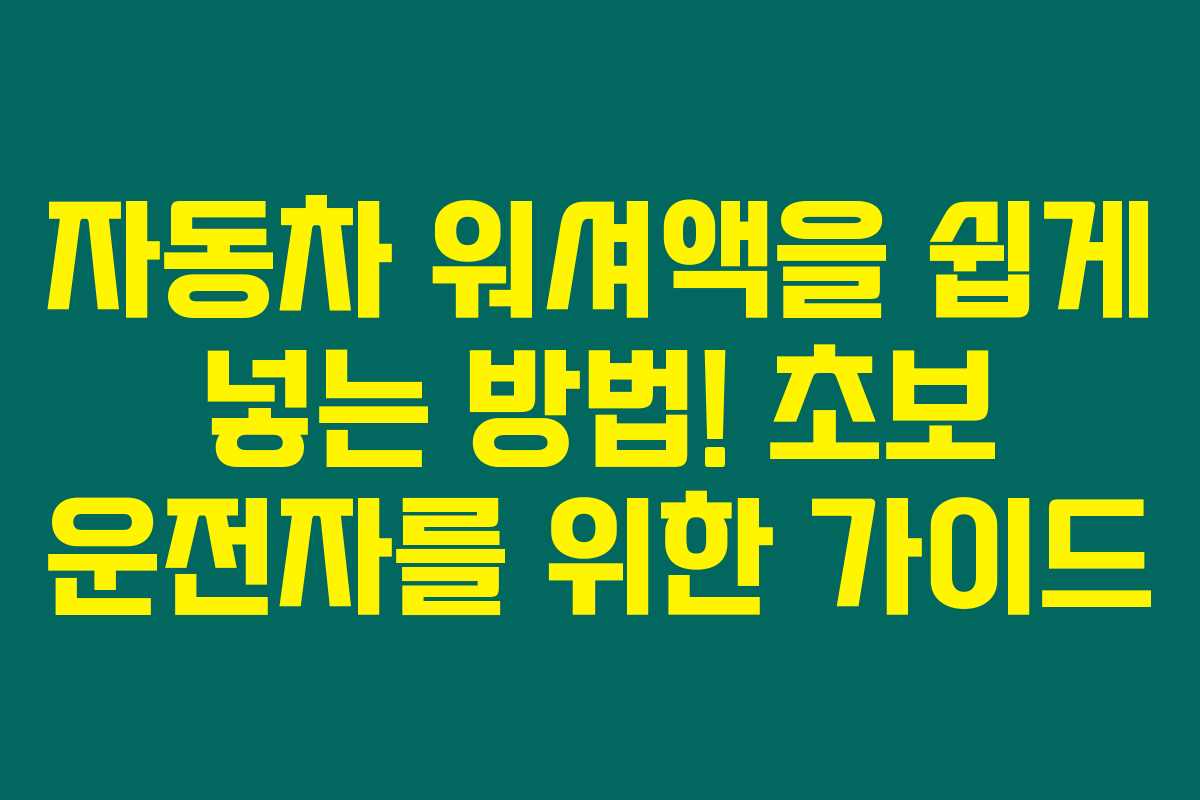 자동차 워셔액을 쉽게 넣는 방법! 초보 운전자를 위한 가이드