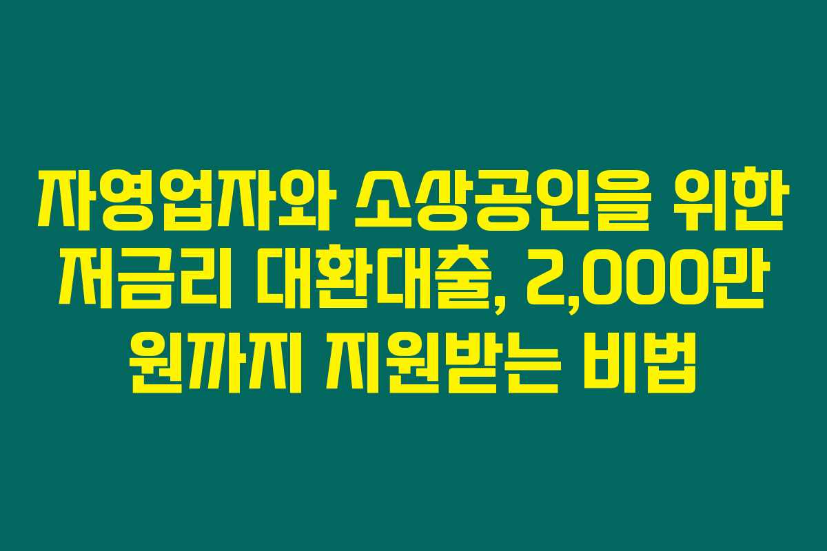 마무리하자면, 저금리 대환대출 프로그램은 자영업자와 소상공인에게 특히 도움이 되는 정책인 것 같아요. 이번 기회를 잘 활용하셔서 금융 부담을 줄이고 더 나은 미래를 향해 나아가셨으면 합니다.