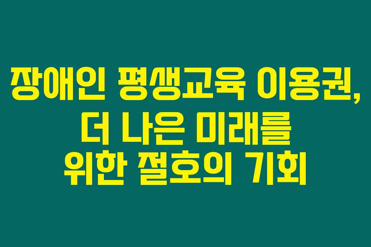 장애인 평생교육 이용권은 장애인들이 다양한 교육 프로그램에 참여할 수 있는 소중한 기회입니다. 이 프로그램을 통해 많은 장애인분들이 자신을 성장시키고, 삶의 질을 향상시킬 수 있기를 바랍니다. 주변의 장애인 가족이나 친구들에게도 이 정보를 공유하여 도움이 되길 바랍니다.