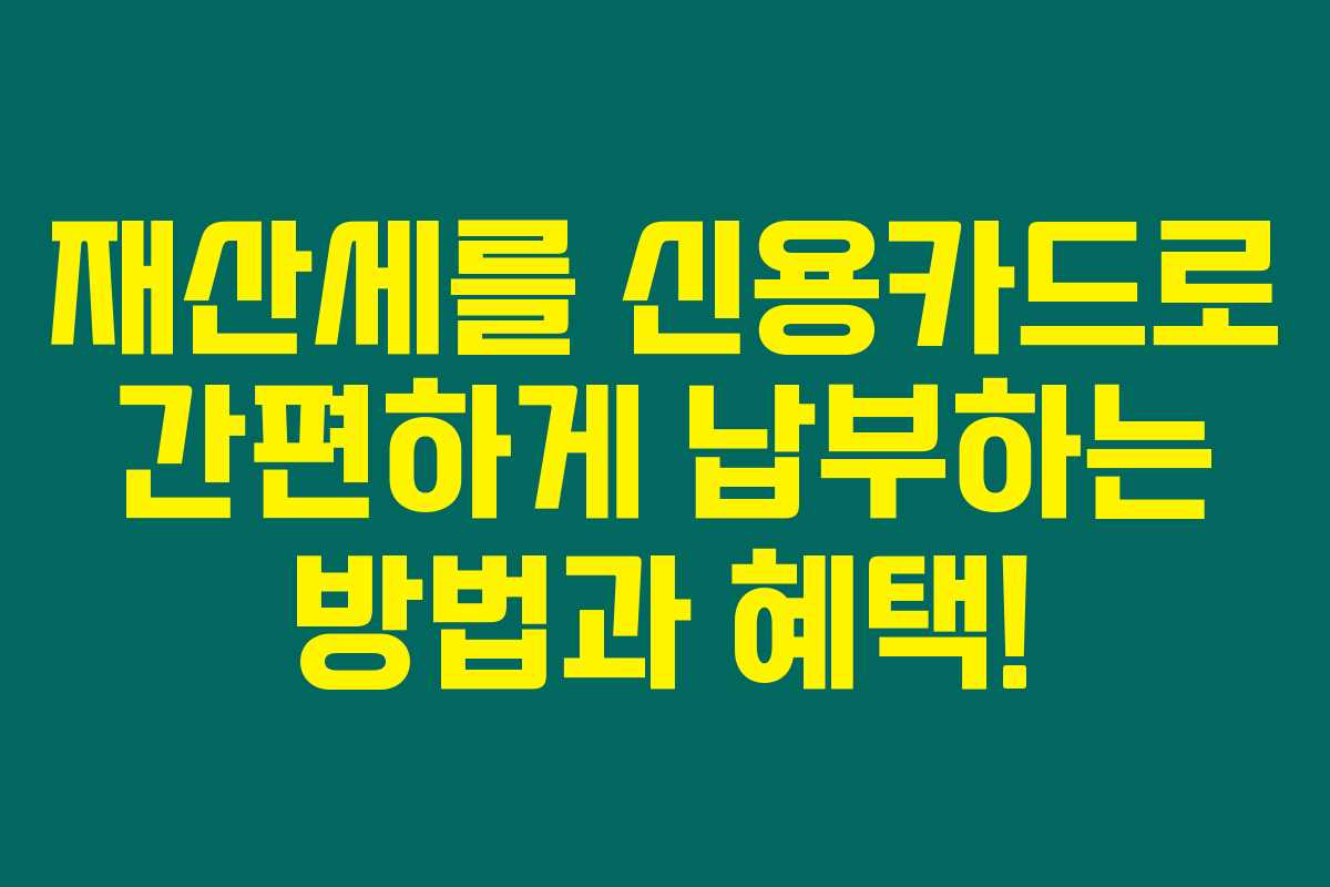 재산세 신용카드 납부, 신속하고 간편하게! 함께 활용해 보세요!