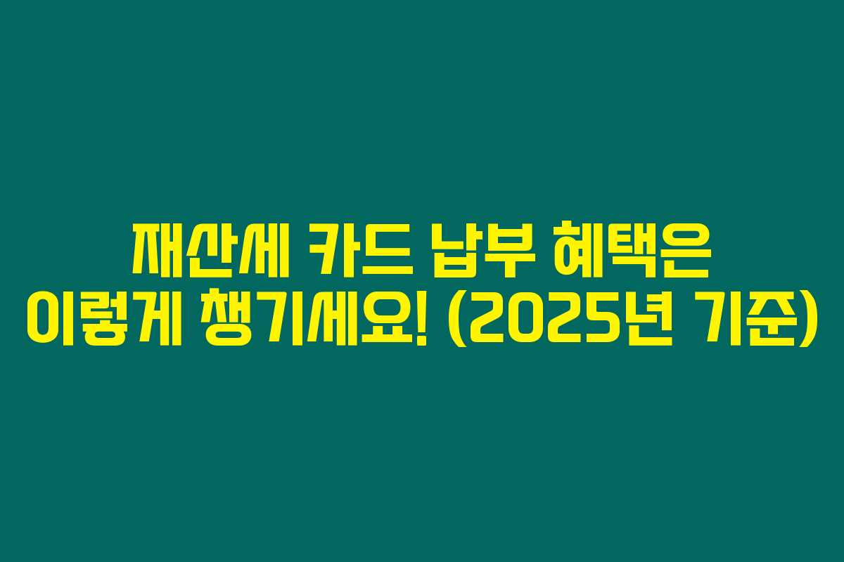 재산세를 납부하면서 다양한 카드 혜택을 받을 수 있다는 사실, 알고 계셨나요? 2025년 기준으로 몇 가지 카드 혜택을 정리해봤어요. 이 혜택들을 활용하면 현명하게 세금을 줄일 수 있답니다.