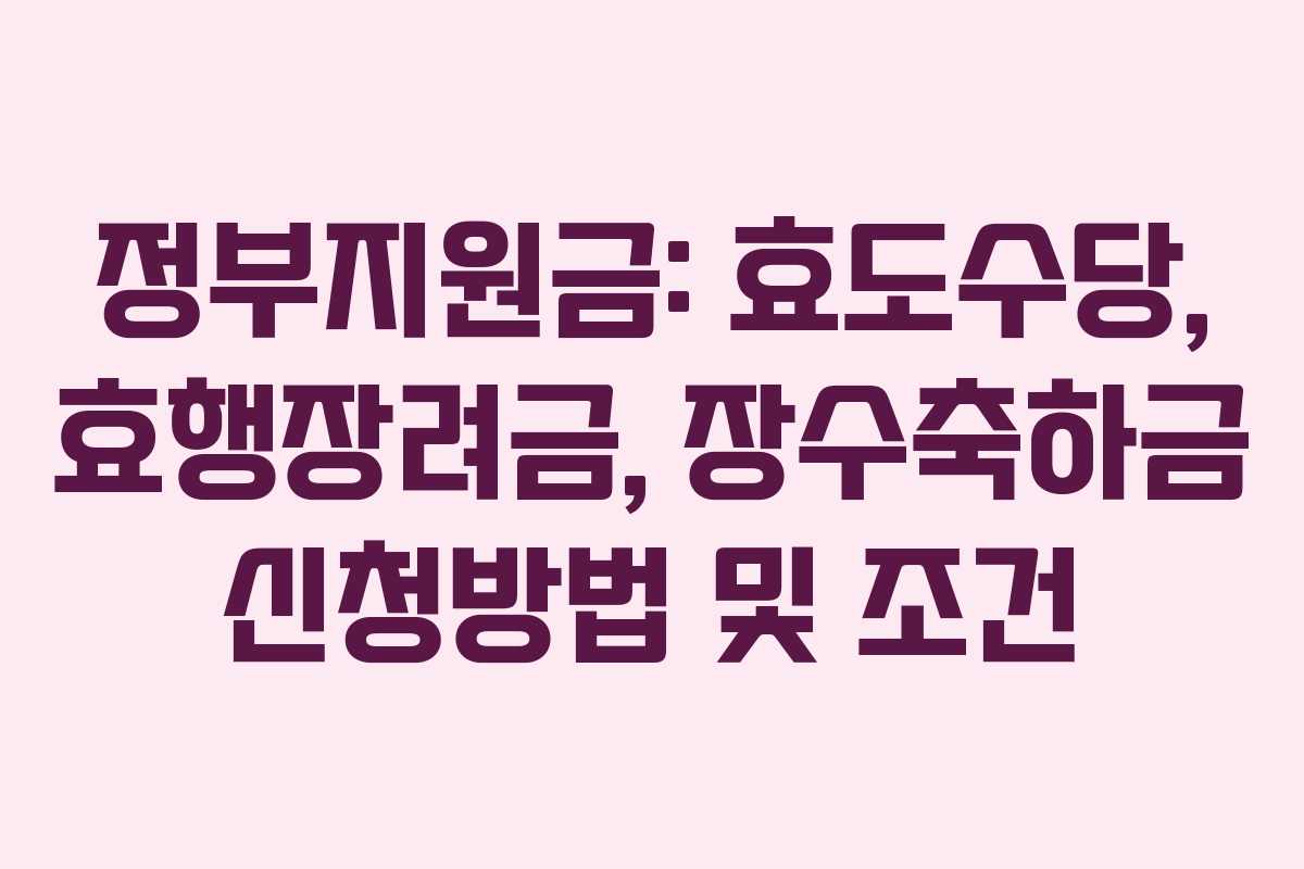 2023년 추석을 맞아 정부에서 제공하는 여러 가지 지원금에 대해 알아보겠습니다. 이 글에서는 효도수당, 장수지원금(장수축하금), 효행장려금의 신청 방법과 조건에 대해 상세히 설명하겠습니다. 각 지역에 따라 지원금의 명칭과 신청 기간이 다를 수 있으니, 거주 지역의 정보를 확인하는 것이 중요합니다.