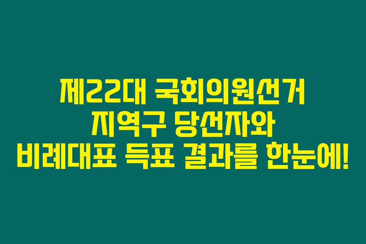 제가 직접 리서치한 바로는 제22대 국회의원선거는 국내 정치 환경에 많은 변화를 가져온 중요한 선거였어요. 이번 선거에서는 지역구에서의 당선자 명단은 물론, 비례대표의 득표 결과도 큰 관심을 받았는데요. 아래를 읽어보시면, 각 지역구 당선자와 비례대표에 대한 상세한 정보를 확인하실 수 있습니다.