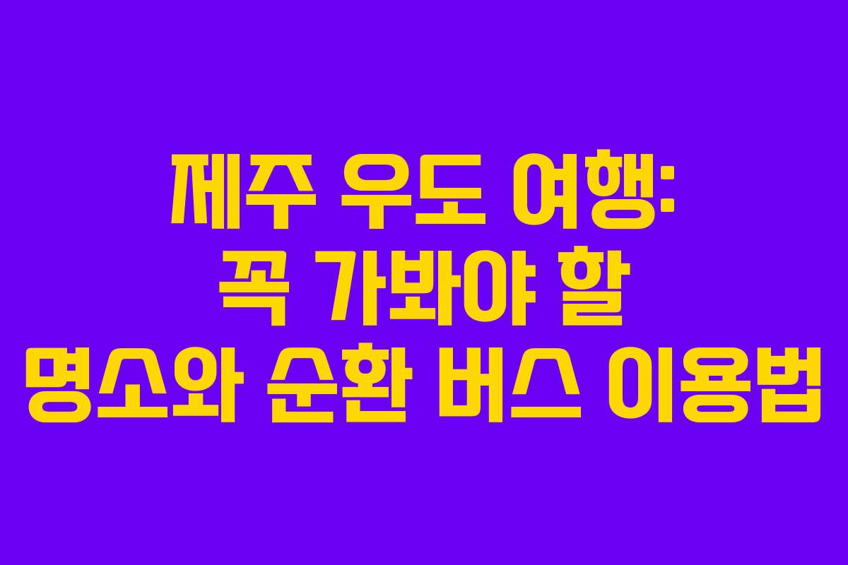 제주 우도는 아름다운 자연경관과 다양한 해변으로 유명한 여행지입니다. 이 블로그에서는 우도를 효율적으로 여행할 수 있는 방법과 꼭 가봐야 할 명소를 소개합니다.