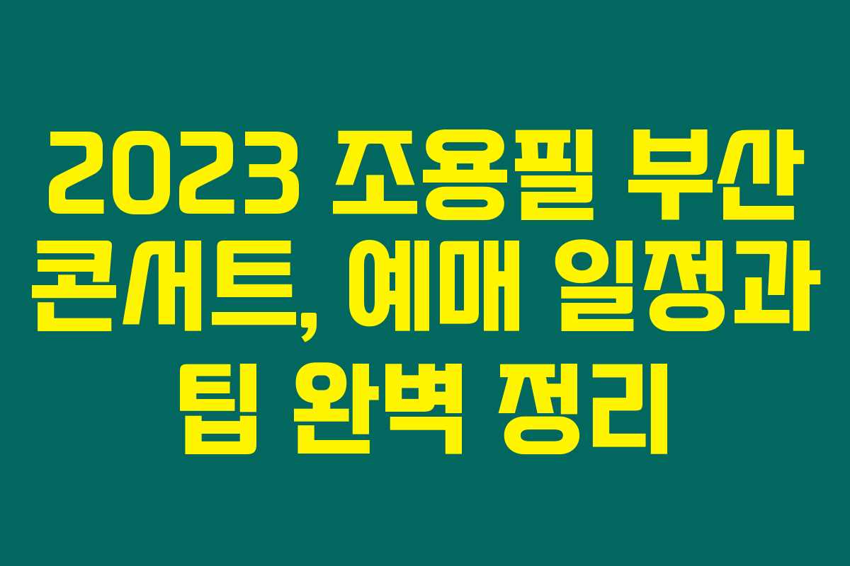 2023년 조용필 콘서트 부산 예정일과 예매 방법을 잘 챙기고 있길 바라요!