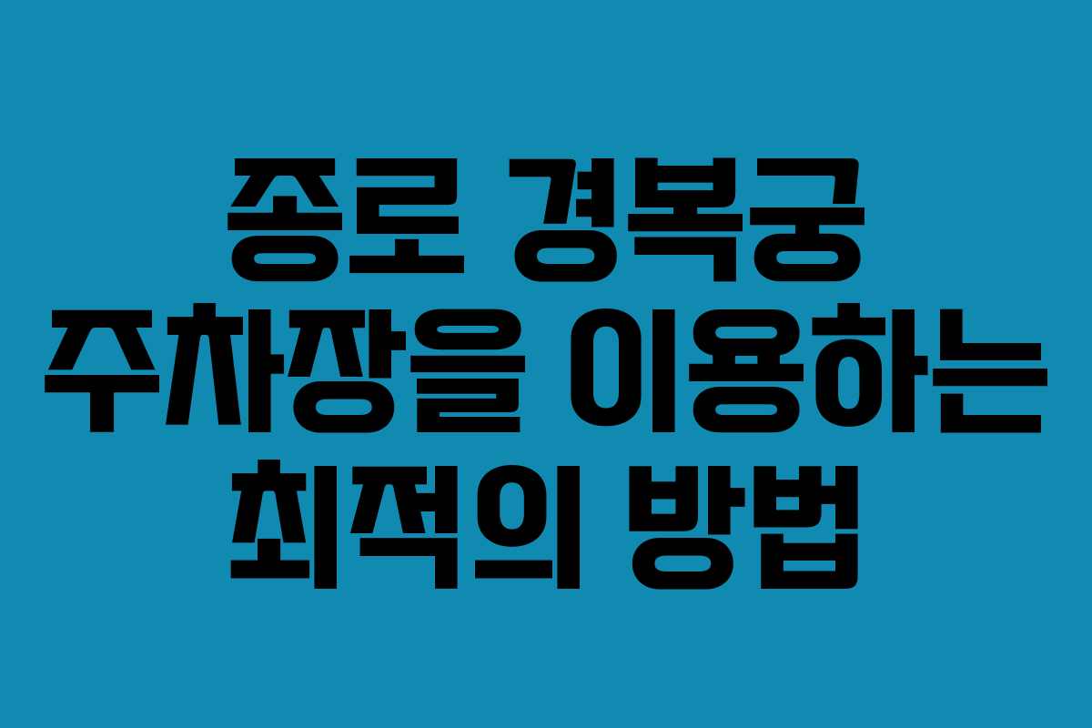 - 경복궁 주차장 이용을 위한 실전 가이드