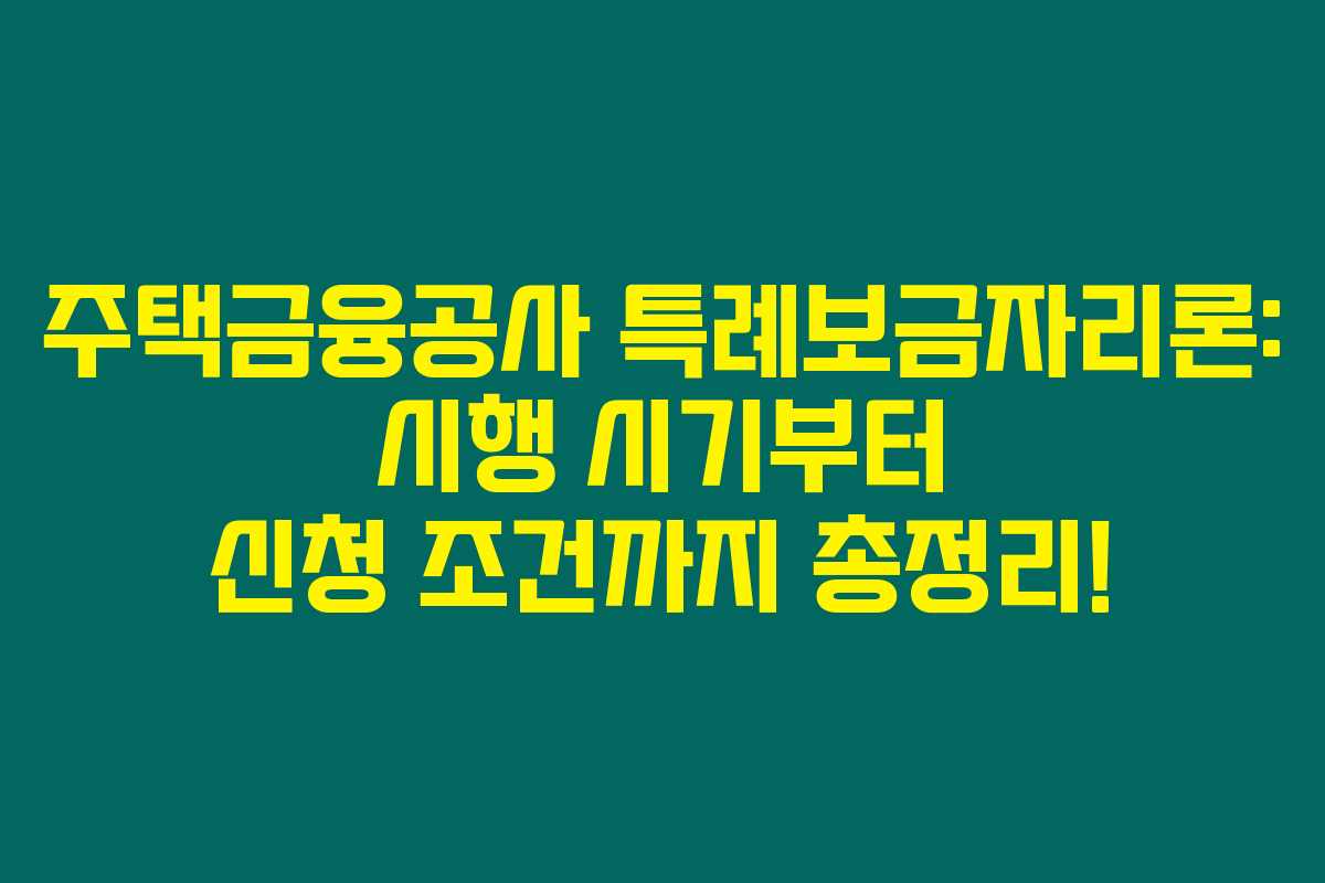 주택금융공사 특례보금자리론: 시행 시기부터 신청 조건까지 총정리!