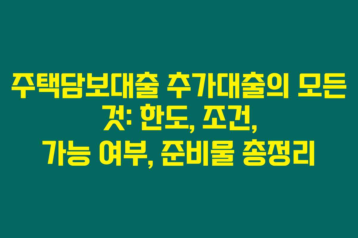 주택담보대출 추가대출의 모든 것: 한도, 조건, 가능 여부, 준비물 총정리