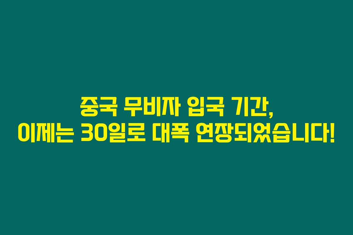 중국 무비자 입국 기간, 이제는 30일로 대폭 연장되었습니다!