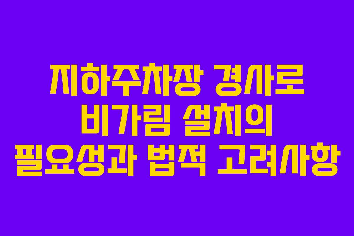 지하주차장 경사로에 비가림 구조물을 설치하려면 반드시 건축 관련 법규와 절차를 준수해야 합니다. 다음 사항을 확인하여 불법 건축물이 되지 않도록 주의하세요: