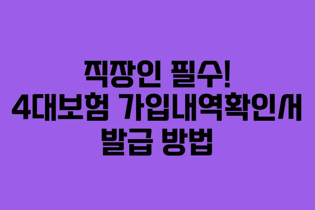 4대보험에 가입하는 것은 모든 직장인의 의무입니다. 국민연금, 국민건강보험, 고용보험, 산재보험은 직장인에게 중요한 사회적 안전망 역할을 하며, 각종 혜택을 받을 수 있는 기초가 됩니다. 그러나 많은 직장인들이 4대보험 가입내역확인서를 발급받는 방법에 대해 잘 모르고 있습니다. 이번 포스팅에서는 4대보험 가입내역확인서를 발급받는 방법에 대해 자세히 안내드리겠습니다.
