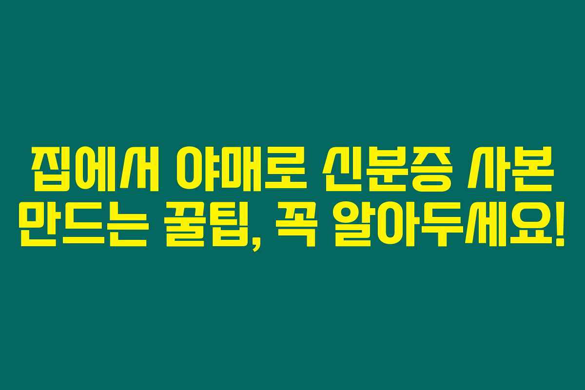 신분증 사본이 필요하신가요? 그런데 복사기를 찾거나 복사방에 갈 수 없는 상황에서 급하게 필요하게 되는 경우가 종종 있습니다. 그렇다면 집에서 쉽게 만들 수 있는 방법을 아시면 좋겠죠! 아래를 읽어보시면 야매로 신분증 사본을 만들 수 있는 실용적인 팁을 확인할 수 있습니다.