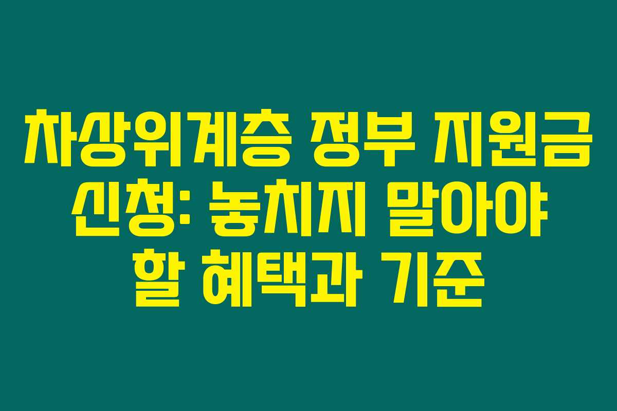 제가 직접 알아본 바로는, 차상위계층으로 인정받기 위해서는 신청 절차를 꼭 거쳐야 해요. 방법은 다음과 같습니다: