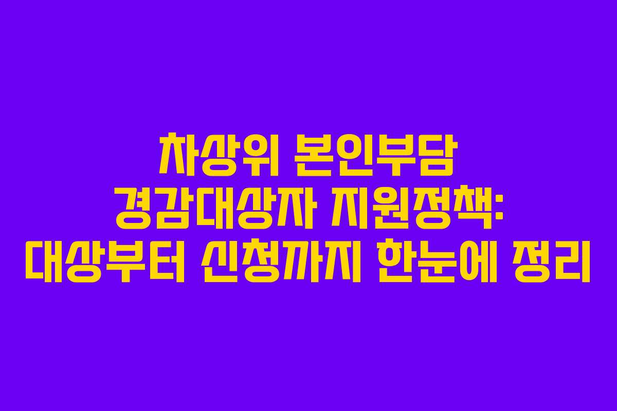 아래를 읽어보시면 차상위 본인부담 경감대상자의 대상 요건, 소득 기준, 구체적인 혜택 규모, 신청 방법과 필요 서류까지 한꺼번에 확인할 수 있습니다.