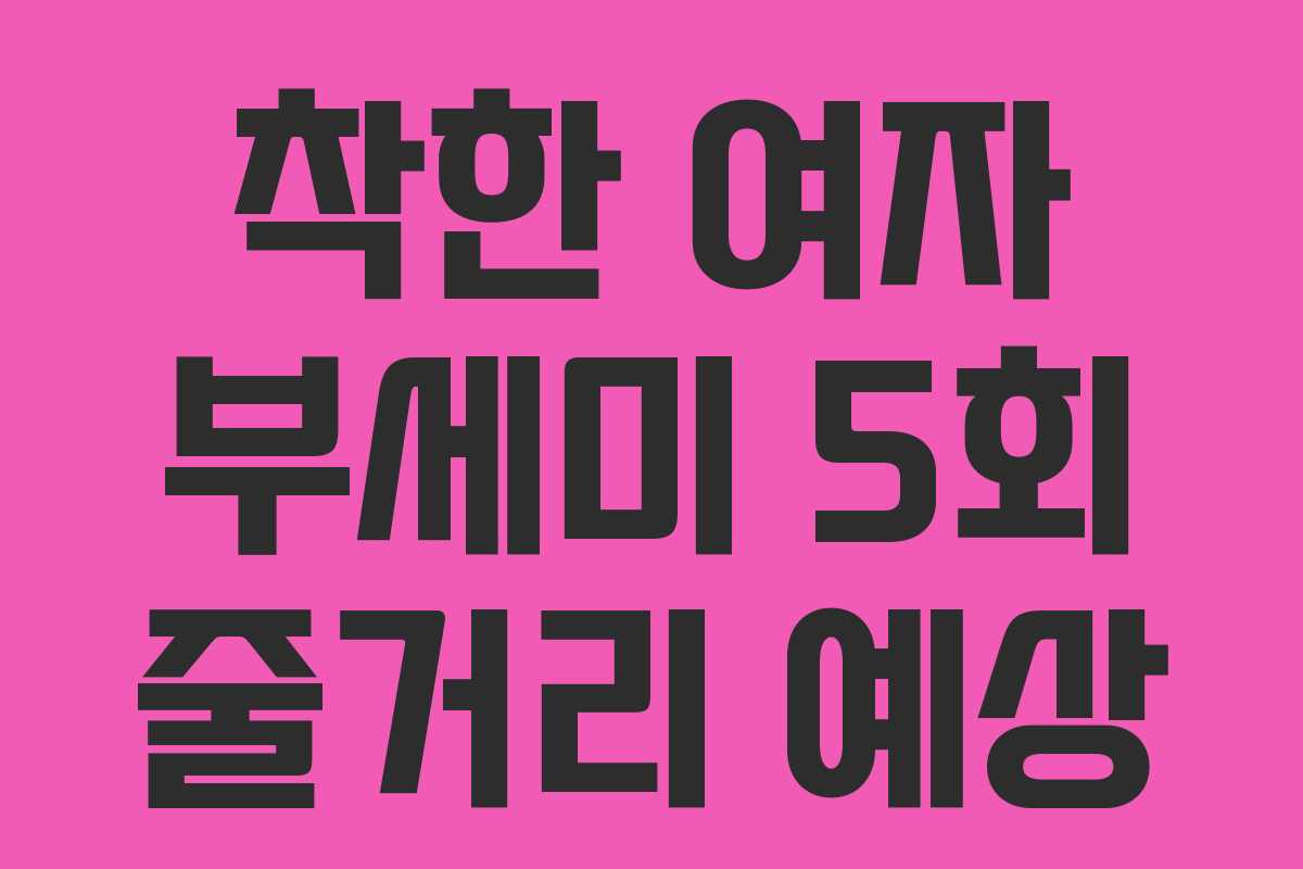 착한 여자 부세미 5회는 이전 회차에서의 격렬한 갈등을 바탕으로, 부세미가 방어적인 태도를 넘어서며 자신만의 복수를 계획하는 모습을 그립니다. 이번 에피소드는 부세미의 흑화가 본격적으로 시작되는 순간으로, 긴장감 넘치는 전개가 기대됩니다.
