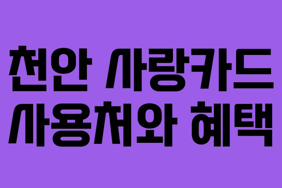 천안 사랑카드는 지역 주민들과 방문객들에게 인기 있는 결제 수단으로, 다양한 가맹점에서 활용할 수 있습니다. 이 카드는 지역 경제 활성화에 중요한 역할을 하고 있으며, 사용처를 알고 있다면 쇼핑과 여가를 더욱 즐겁게 이용할 수 있습니다. 이번 글에서는 천안 사랑카드의 사용처와 혜택에 대해 자세히 알아보겠습니다.