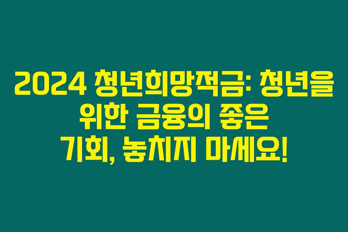 2024 청년희망적금: 청년을 위한 금융의 좋은 기회, 놓치지 마세요!