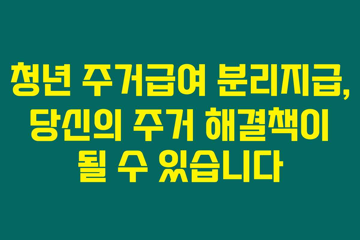 - 청년 주거급여 분리지급, 알아두면 유용한 정보