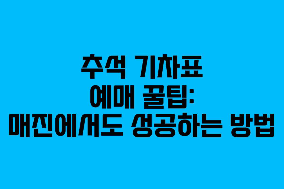 추석 명절 기차표는 경쟁이 치열합니다. 많은 사람들이 동시에 예매를 시도하기 때문에, 금방 매진될 수 있습니다. 따라서 예매를 원하신다면 미리 준비하고 전략을 세워야 합니다.