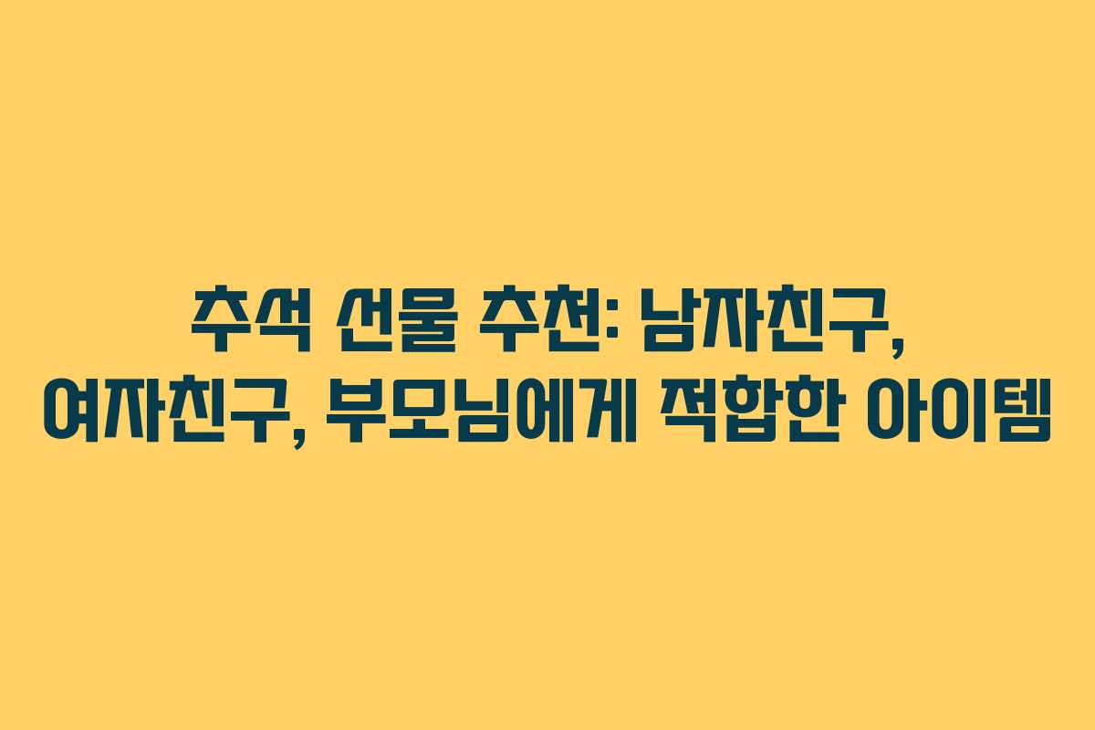 추석 명절은 가족과 친지들이 모여 서로의 안부를 묻고 정을 나누는 소중한 시간입니다. 이때 선물은 그 마음을 전하는 중요한 매개체가 됩니다. 이번 글에서는 남자친구, 여자친구, 부모님을 위한 추석 선물 추천과 비추천 아이템을 소개하겠습니다.