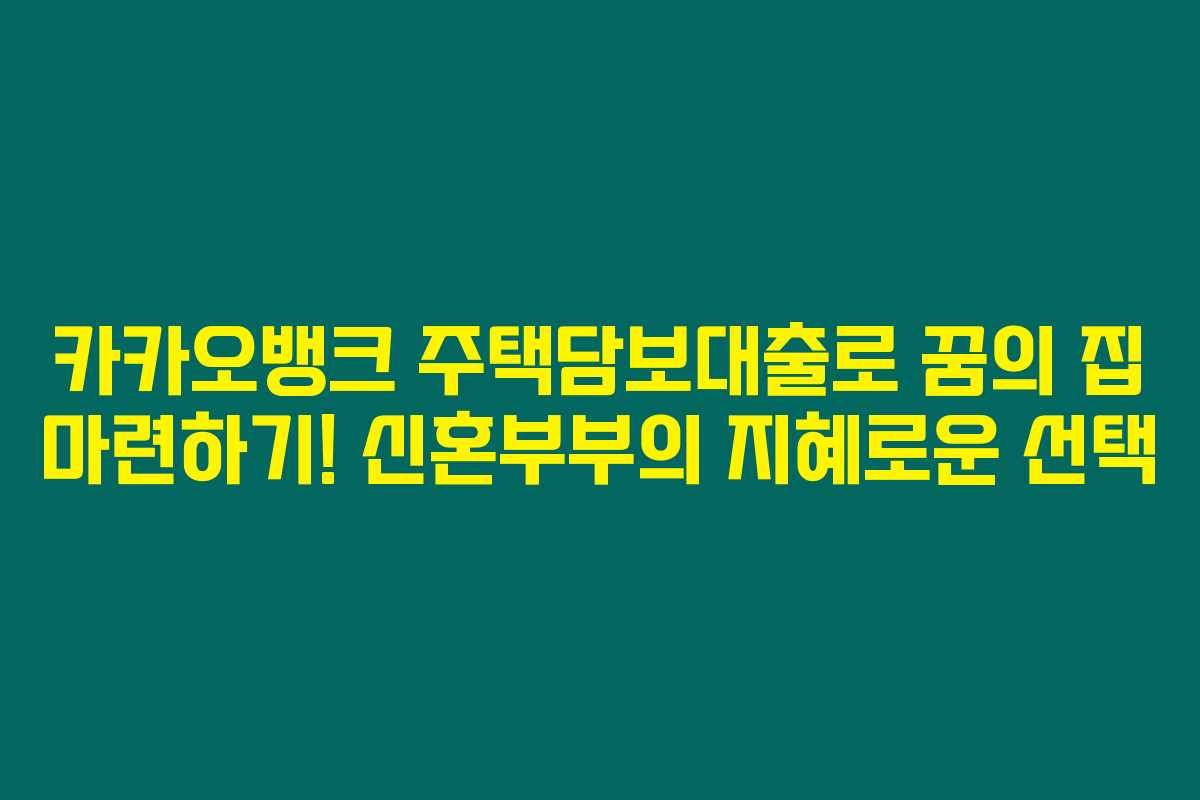 제가 직접 경험해본 결과로는, 카카오뱅크를 통한 주택담보대출은 신혼부부에게 매우 유용한 금융 상품이었습니다. 특히 고정금리로 안정적인 대출을 받아 꿈의 집을 마련하는 데 큰 도움을 주었습니다. 아래를 읽어보시면 신혼부부가 공동명의로 대출을 진행하며 겪은 과정과 혜택, 주의할 점 등을 자세히 알아보실 수 있을 거예요.