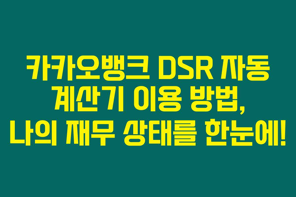 카카오뱅크 DSR 자동 계산기를 이용하면 누구나 쉽게 나의 재무 상태를 가늠할 수 있으며, 이를 통해 합리적인 자산 관리 및 대출 계획을 세울 수 있게 됩니다. 여러분도 꼭 한번 사용해 보세요!