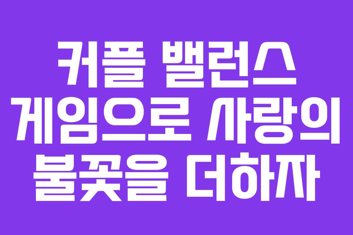 커플 밸런스 게임은 사랑을 더욱 깊고 풍성하게 만들어주는 좋은 방법입니다. 다양한 질문을 통해 서로의 마음을 이해하고, 더욱 돈독한 관계를 만들어 나가세요.
