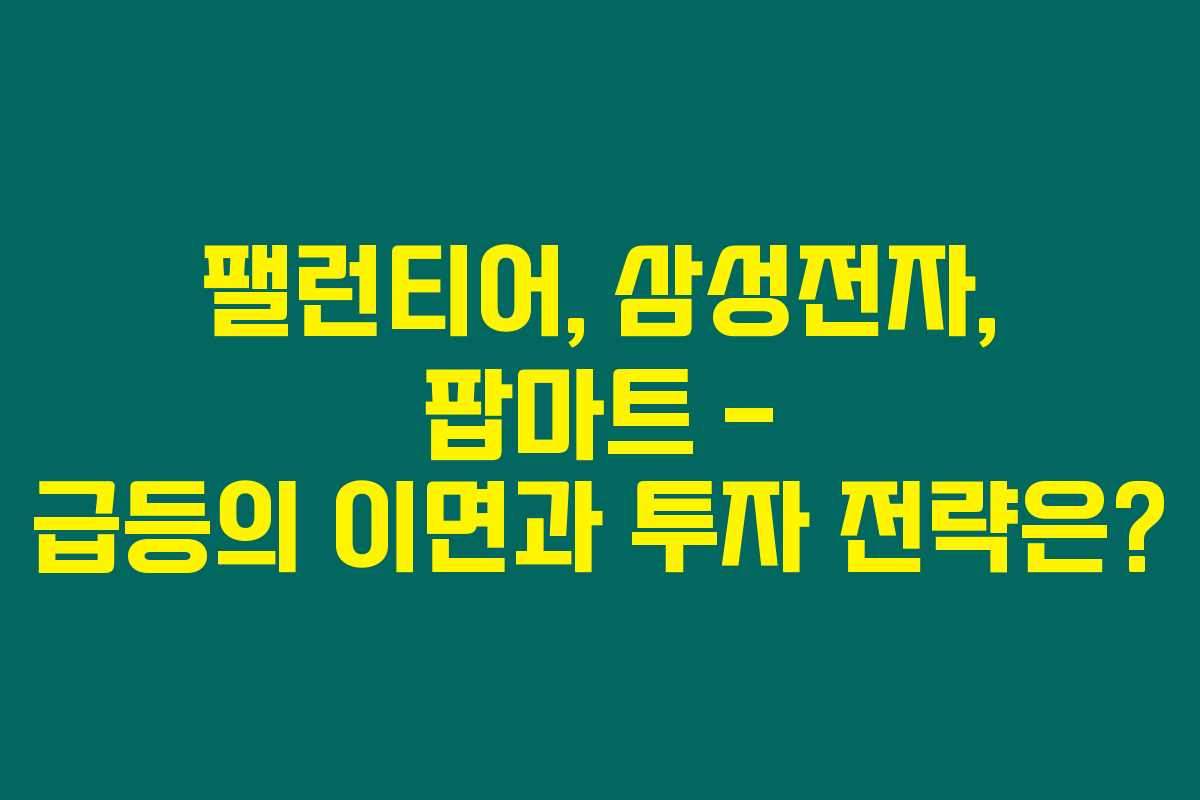 각각의 주식 시장에서 팰런티어, 삼성전자, 팝마트가 급상승하며 화제가 되고 있어요. 그 배경에 대해 정확히 알고 나면, 더욱 효과적인 투자 전략을 세울 수 있을 거라 생각해요. 아래를 읽어보시면, 이 세 가지 종목의 흐름과 그 속에 숨어 있는 투자 전략을 함께 정리해 보았답니다.
