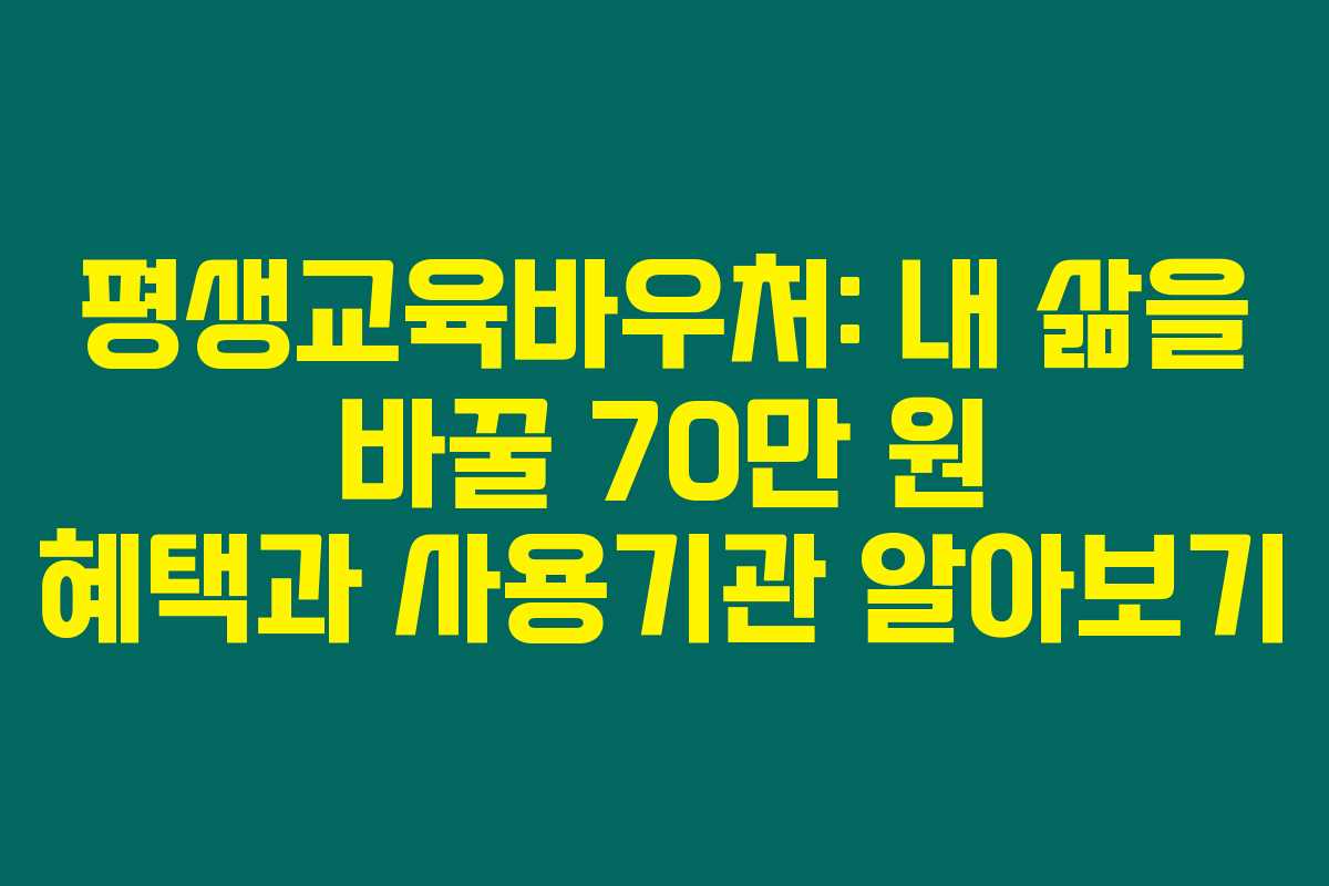 제가 직접 경험해본 결과로는 평생교육바우처는 저소득층 성인들에게 큰 도움이 되는 제도입니다. 이 프로그램을 활용하면 연간 최대 70만 원의 지원금을 통해 자신의 역량을 강화할 수 있는데요. 아래를 읽어보시면 평생교육바우처의 신청 방법과 사용 가능한 기관, 그리고 이 제도가 어떻게 다양한 혜택을 제공하는지에 대한 정보를 확인하실 수 있습니다.