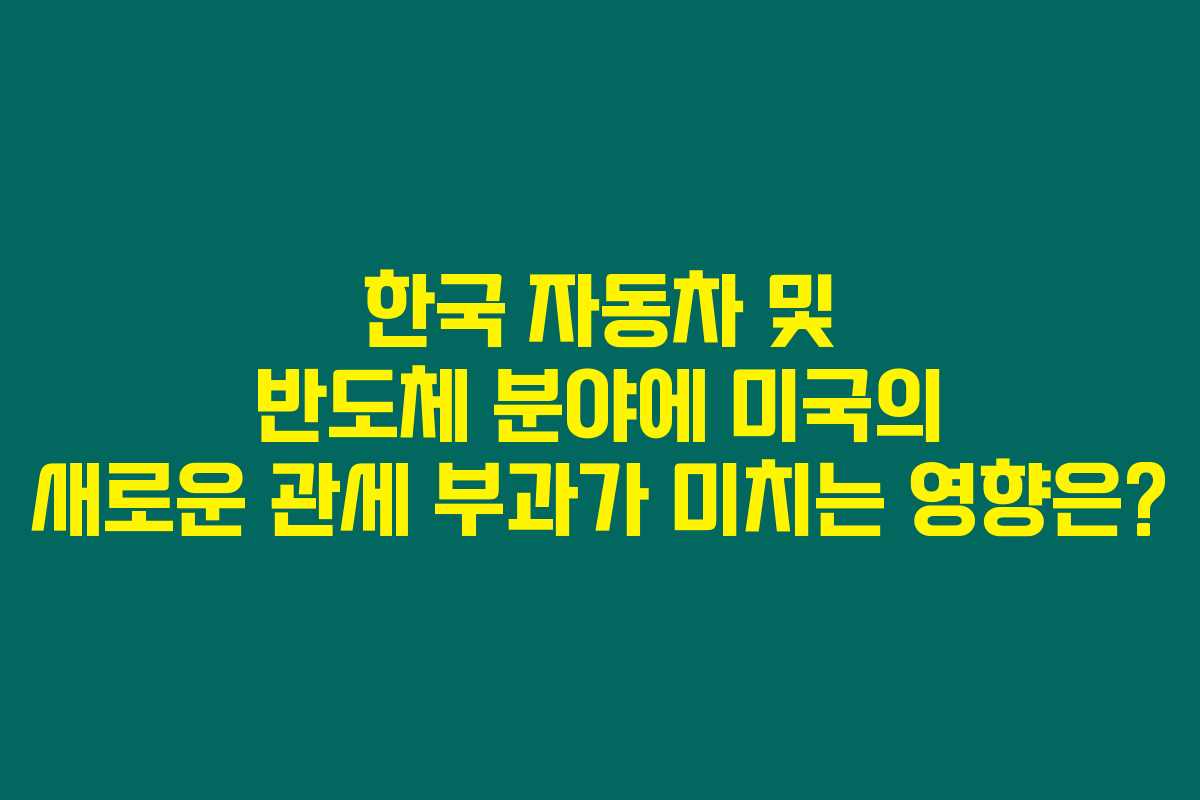 2025년부터 시행되는 미국의 자동차 및 반도체에 대한 관세 부과 정책이 한국 경제에 큰 파장을 일으킬 것으로 예상되는데요. 이러한 변화가 한국의 자동차 및 반도체 산업에 어떤 영향을 줄지 알아보도록 하겠습니다!