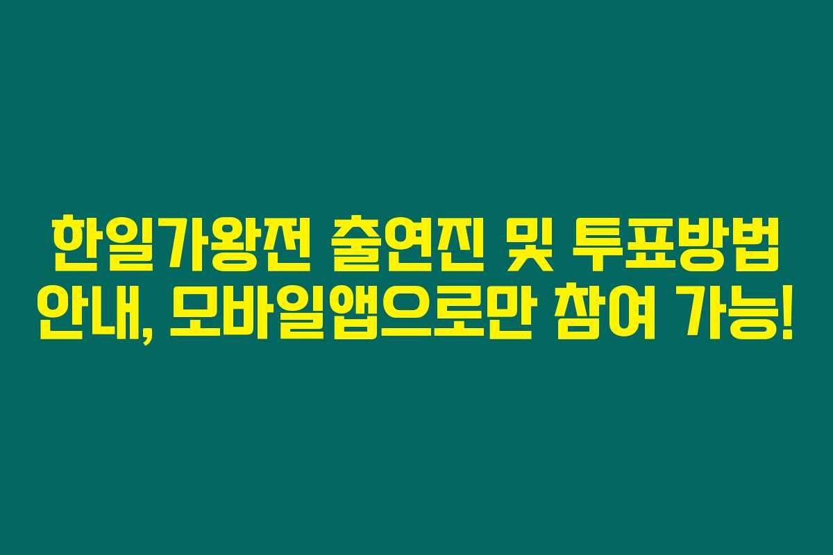 한일가왕전이 드디어 시작됩니다! 이 특별한 트롯 대결에서 한국과 일본의 차세대 스타들의 멋진 무대를 만나고 싶다면, 알아두셔야 할 정보들이 가득해요. 내가 응원하는 가수를 위해 어떻게 투표하는지도 궁금하지 않으세요? 아래를 읽어보시면, 한일가왕전의 출연진 및 투표 방법에 대해 상세히 알아보실 수 있습니다!
