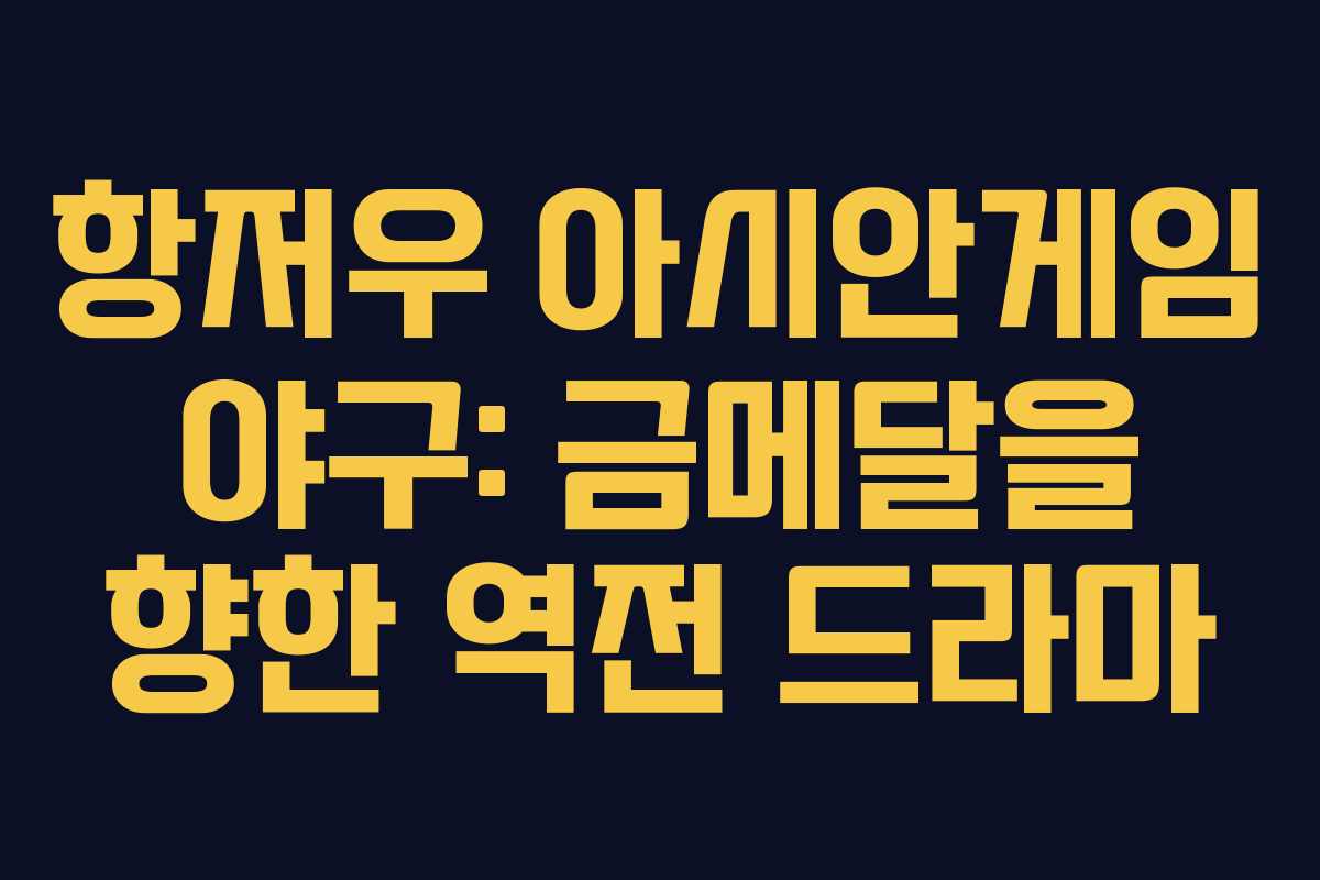 항저우 아시안게임 야구: 금메달을 향한 역전 드라마