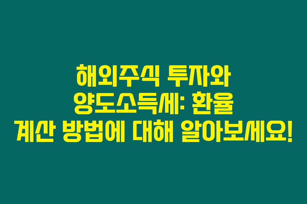해외주식 투자에 대한 관심이 높아지고 있는 요즘, 양도소득세와 환율 계산 방법은 나에게도 필요한 기본 상식이 되었어요. 제가 직접 경험해본 바로는, 이는 주식 투자에서 절대 무시할 수 없는 요소랍니다. 이 글에서는 해외주식 양도소득세 계산 시 중요한 환율의 개념 및 적용 방법을 상세히 소개할게요.