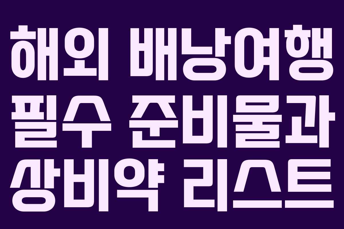 해외 배낭여행을 떠나기 전에는 필수 준비물을 체크하는 것이 중요합니다. 이번 글에서는 해외 여행을 위한 필수 물품과 상비약 리스트를 소개하겠습니다.