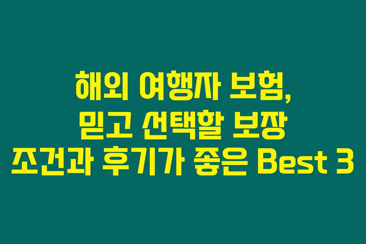 해외 여행자 보험, 믿고 선택할 보장 조건과 후기가 좋은 Best 3