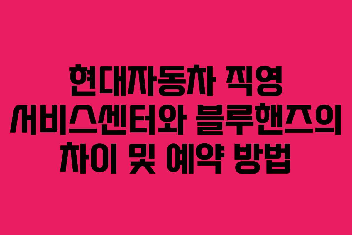 현대자동차의 서비스는 고객의 차량을 최상의 상태로 유지하는 데 필수적입니다. 이번 포스팅에서는 현대자동차 직영 서비스센터와 블루핸즈의 차이점과 예약 방법에 대해 알아보겠습니다.
