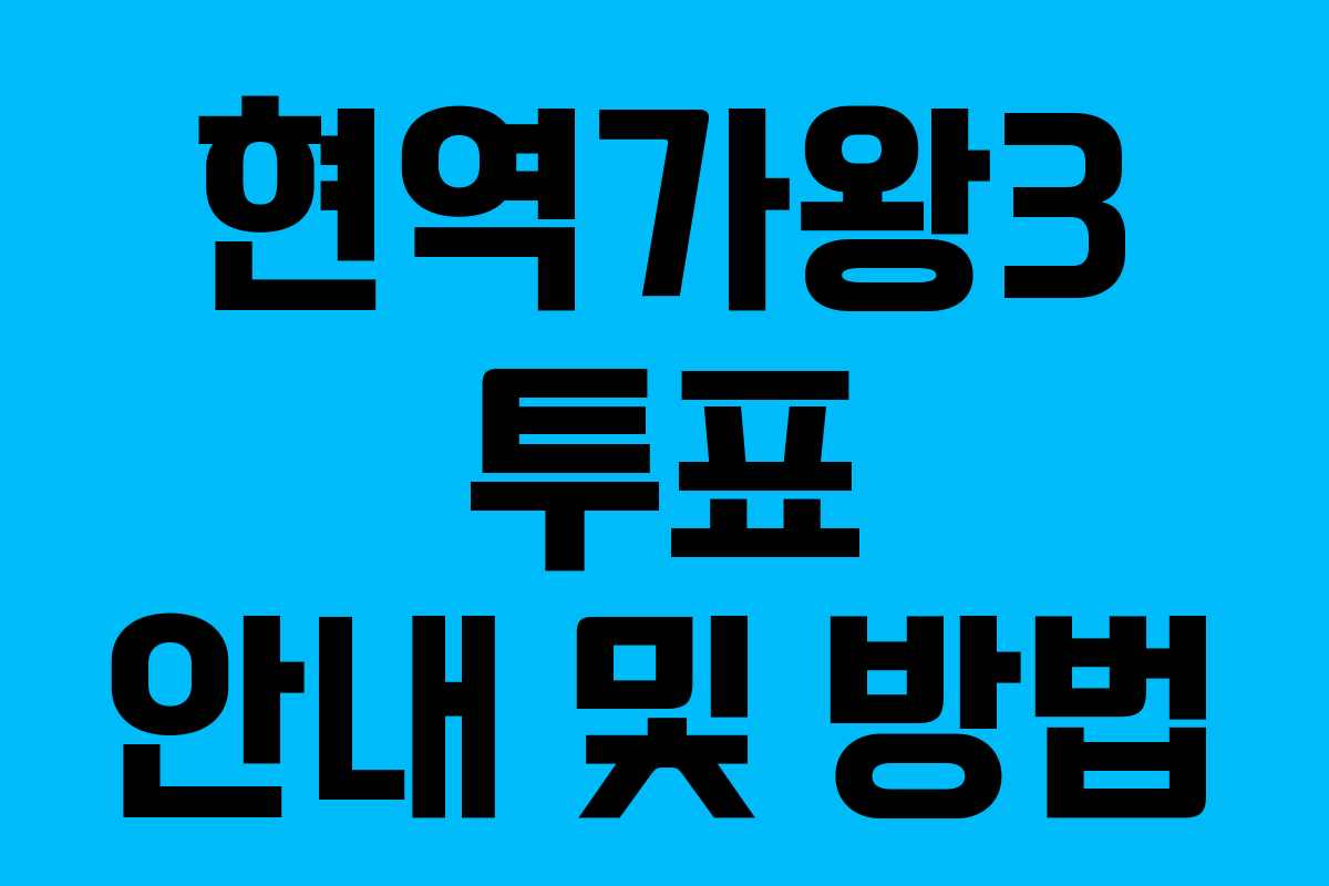 현역가왕3의 투표가 곧 시작됩니다. 공식적인 투표처는 아직 발표되지 않았지만, 이전 시즌을 참고할 때 문자 투표와 온라인 플랫폼을 통한 응원 투표가 유력하게 예상됩니다. 투표 일정과 방법, 유의사항을 미리 확인하여 준비하시기 바랍니다.