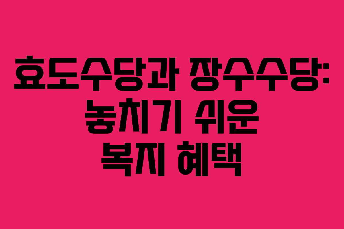 효도수당과 장수수당은 노인분들에게 제공되는 중요한 복지 제도입니다. 이 두 가지 수당은 지방자치단체마다 명칭과 지원 금액이 다를 수 있으며, 많은 사람들이 이러한 혜택이 존재하는 줄 모르고 지나치는 경우가 많습니다. 이번 글에서는 효도수당과 장수수당에 대한 자세한 정보와 신청 방법을 소개하겠습니다.