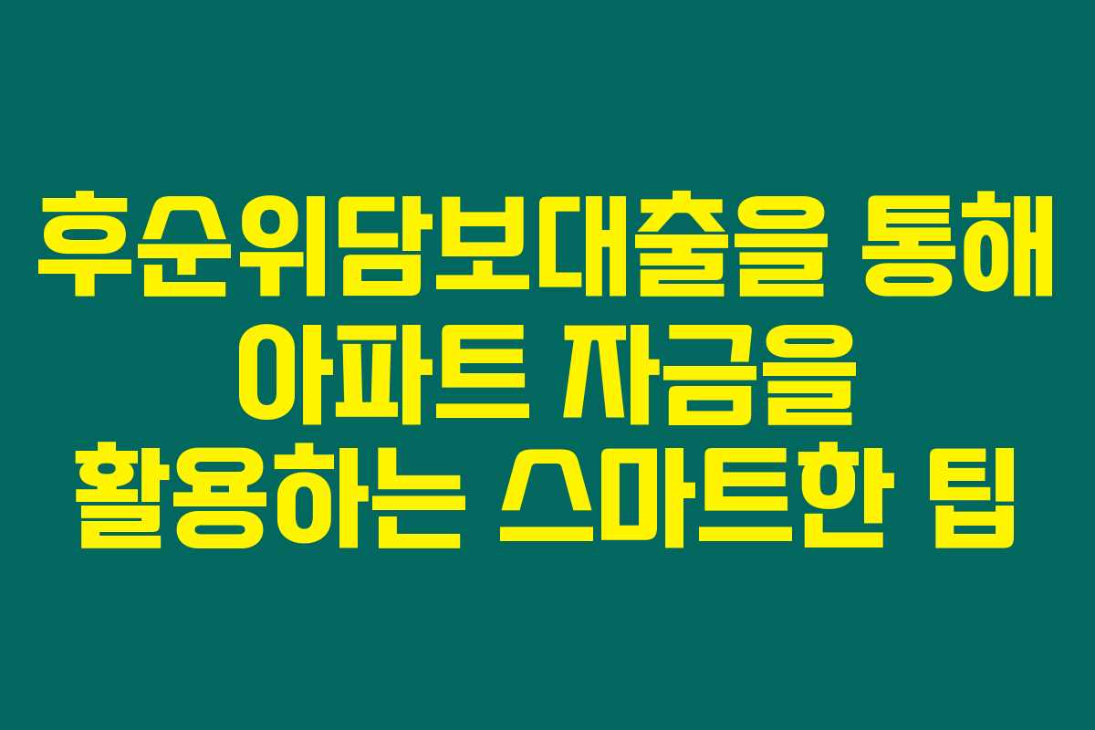 후순위담보대출을 통해 아파트 자금을 활용하는 스마트한 팁