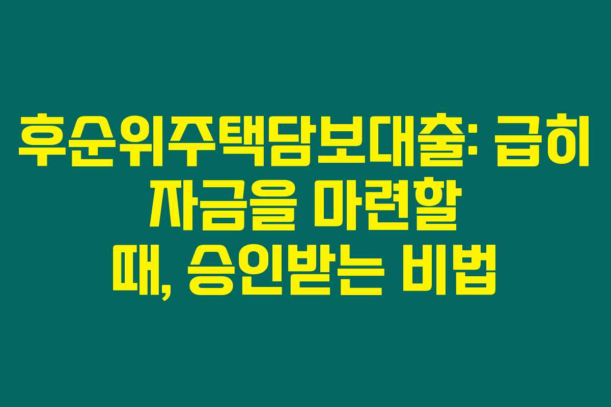 제가 직접 경험해본 결과로는, 후순위주택담보대출은 빠르게 추가 자금을 필요로 하는 경우 매우 유용한 금융 상품이에요. 뭐든지 급하게 필요할 때는 선택이 쉽지 않은 법이지요? 아래를 읽어보시면 후순위주택담보대출을 쉽게 신청하고 승인받기 위한 유용한 방법과 팁을 통해 도움이 될 거예요.