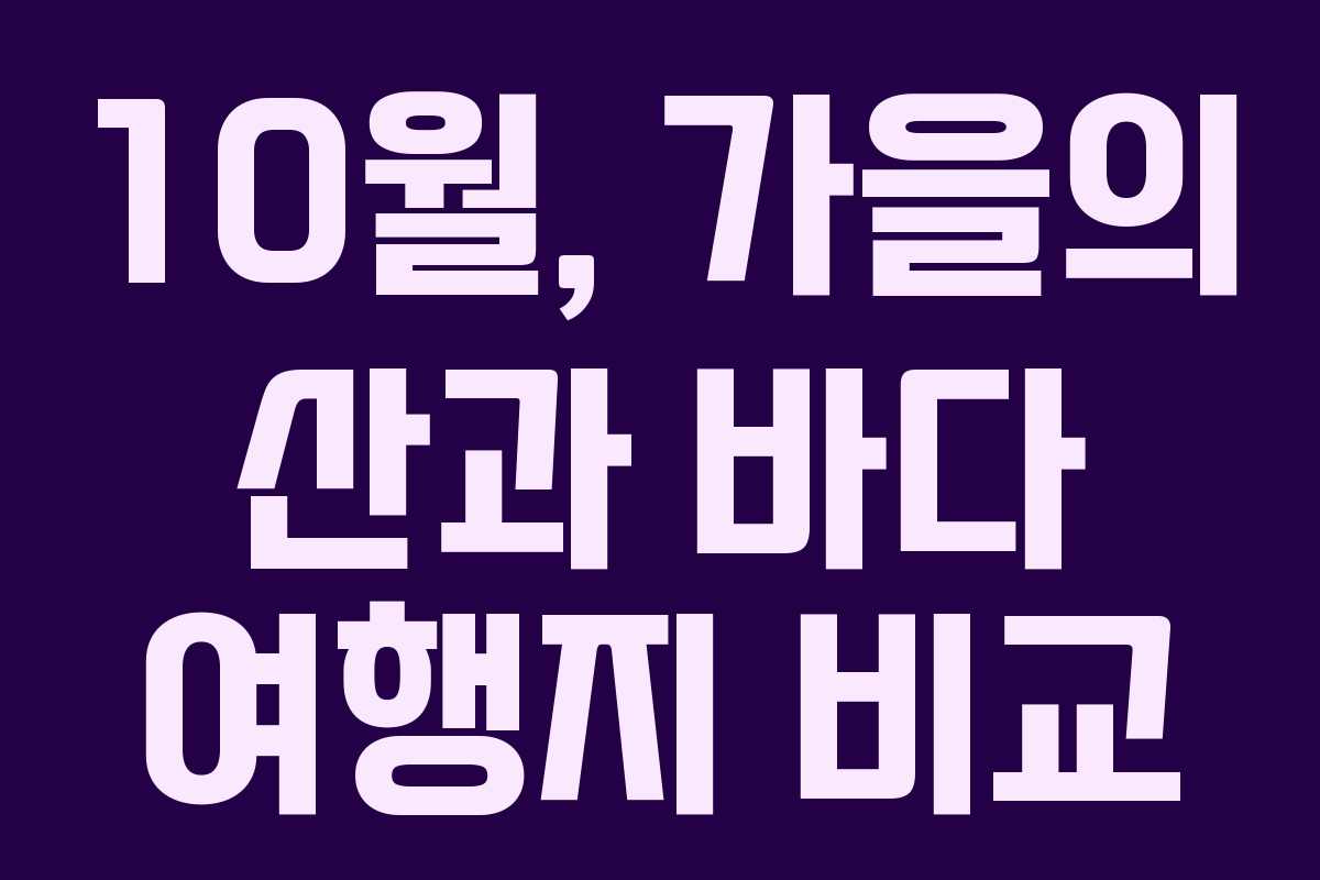 10월은 선선한 날씨와 맑은 하늘 덕분에 여행하기 가장 좋은 시기입니다. 특히 당일치기 여행은 짧은 시간 안에 힐링을 누릴 수 있는 방법으로 많은 사람들이 선호합니다. 이 시기에 가장 큰 고민은 산으로 갈지, 바다로 갈지 결정하는 것입니다. 이번 글에서는 10월에 적합한 당일치기 산과 바다 여행지를 비교하고, 각각의 매력과 추천지를 소개합니다.