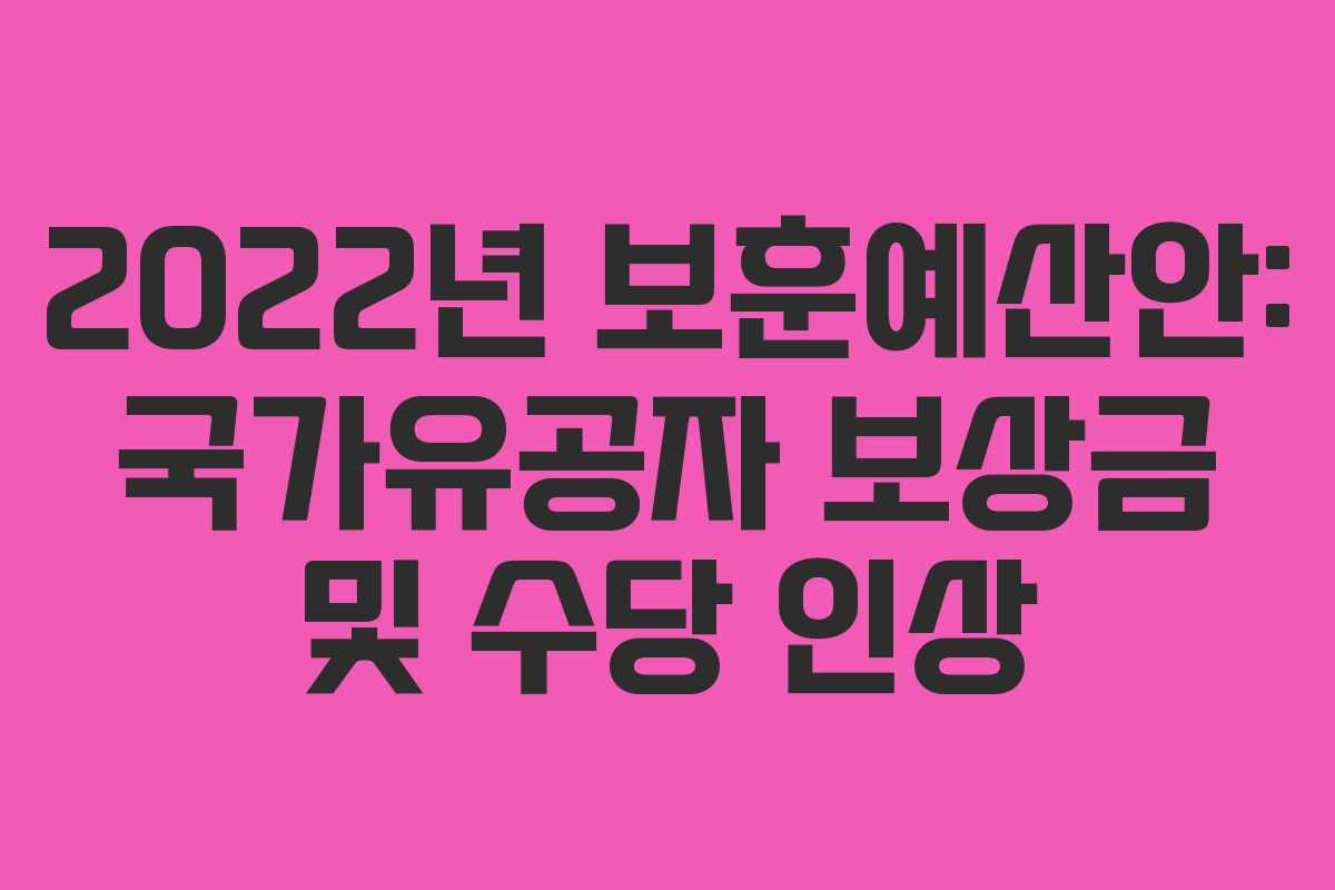 2022년 보훈예산안에서는 국가유공자 및 그 유가족을 위한 보상금과 수당이 인상되었습니다. 총 4조 5,382억 원이 편성되어, 보훈 정책의 실효성을 강화하고자 하는 정부의 의지를 반영하고 있습니다.