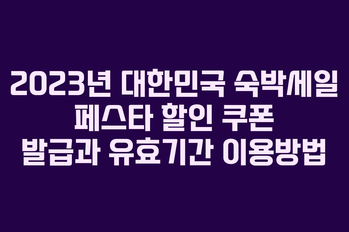 태그: 2023 대한민국 숙박세일 페스타, 숙박세일 페스타 할인 쿠폰 발급, 할인 쿠폰, 숙박 할인, 유효기간, 이용방법, 발급 방법, 예약 팁, 호텔 예약, 연휴 여행, 예산 절약