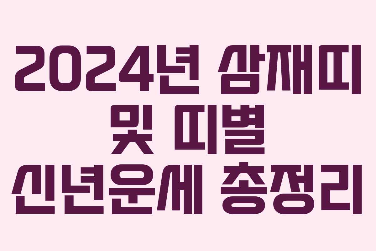 2024년이 다가오면서 많은 사람들이 신년운세에 관심을 가지게 됩니다. 특히 삼재띠 여부는 많은 이들에게 중요한 요소로 작용하는데요. 이번 글에서는 2024년의 삼재띠와 띠별 운세를 정리해 보겠습니다.
