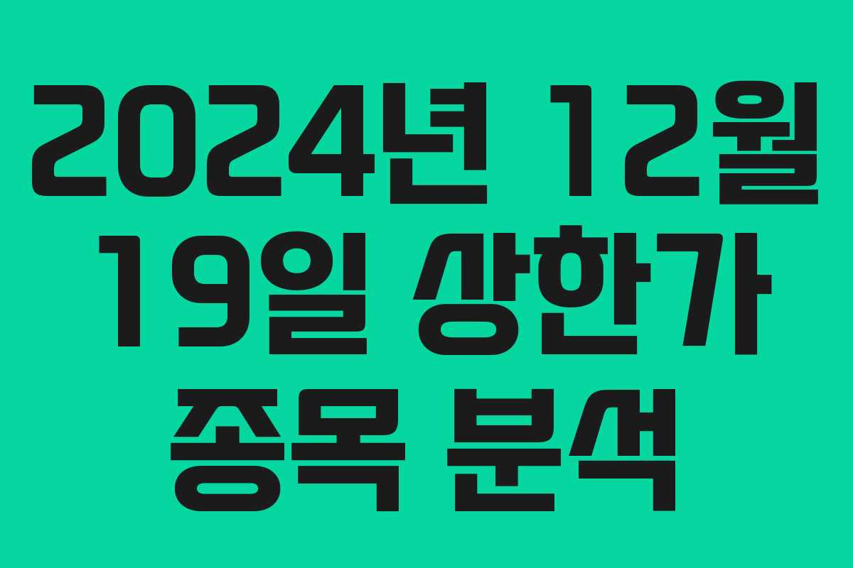 2024년 12월 19일 기준으로 상한가를 기록한 종목은 코스피에서 2종목, 코스닥에서 4종목입니다. 이들 종목에 대한 간단한 분석을 통해 주요 정보를 살펴보겠습니다.