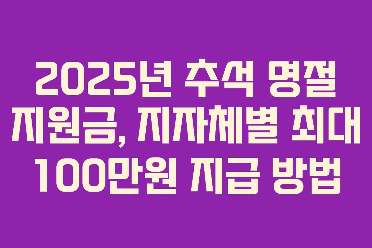 2025년 추석에는 전 국민 지원금이 없지만, 지자체별로 지급되는 명절 위로금은 최대 100만 원까지 차이가 납니다. 각 지역의 정책에 따라 지원금이 달라지기 때문에, 해당 지역의 정책을 잘 파악하는 것이 중요합니다. 결국, 추석 지원금의 핵심은 전국 단위의 보편적 지원이 아닌 지자체 단위의 선별적 지원임을 명심해야 합니다.
