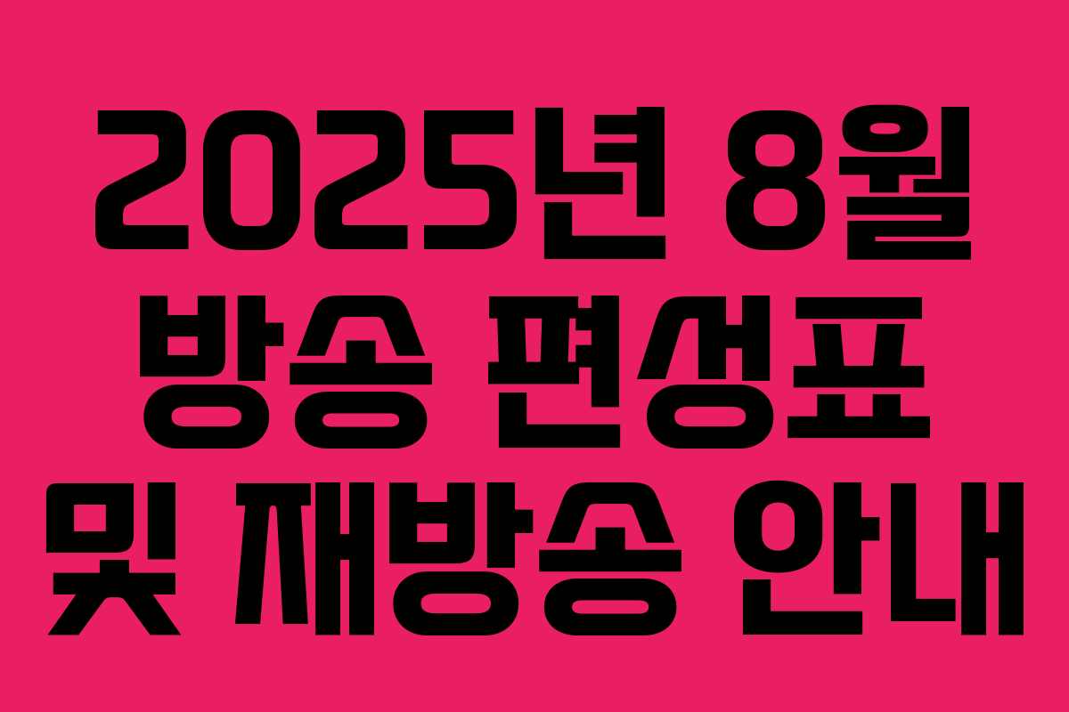 2025년 8월의 다양한 방송 프로그램과 재방송 편성에 대한 정보를 제공합니다. 특히 스포츠와 예능 프로그램에 대한 생방송 및 재방송 일정에 대해 자세히 살펴보겠습니다.